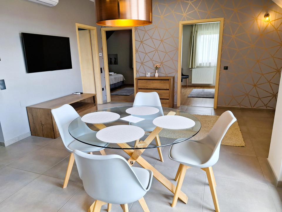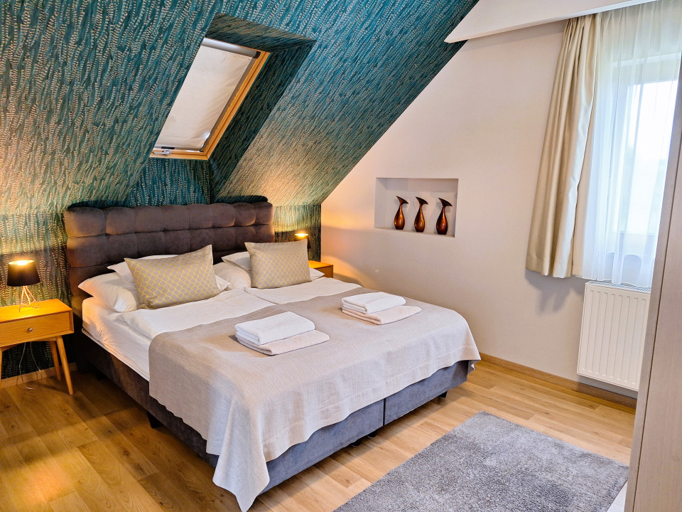 A jól felszerelt, modern apartmanok méretei: 65 nm, 55 nm, 45 nm és három darab 35 nm nagyságú, max. 22-24 fő befogadására alkalmasak.