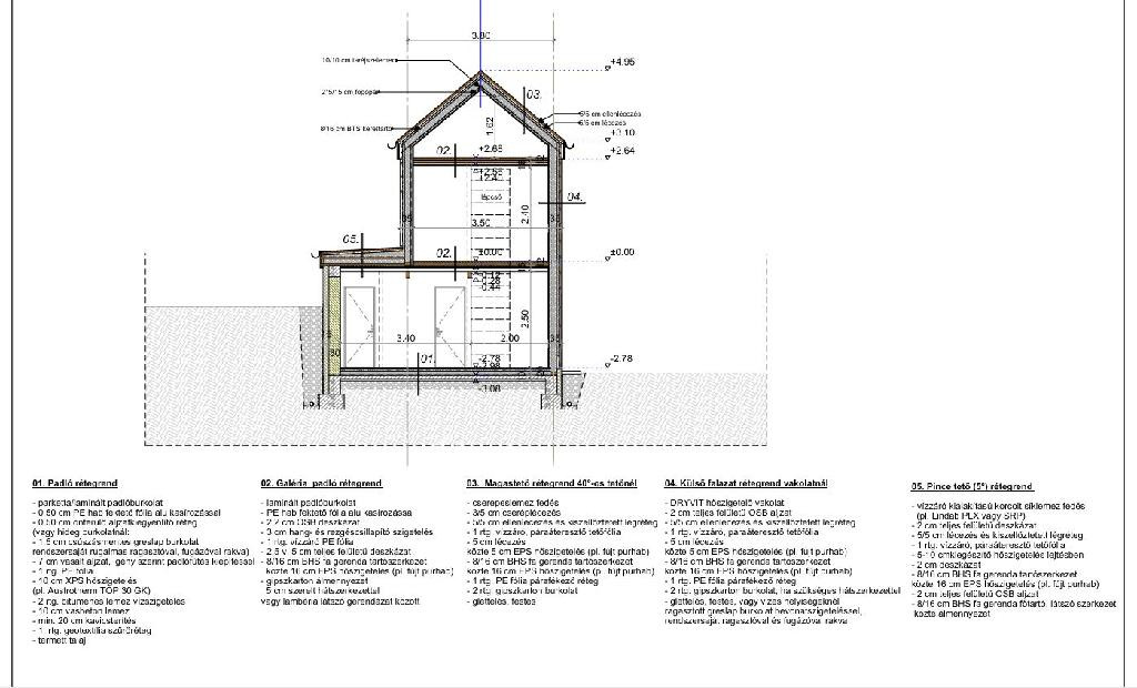 A ház háromszintes, jelenleg szerkezetkész állapotú, a tető befejezése, a homlokzati szigetelés és a nyílászárók beépítése folyamatban van.