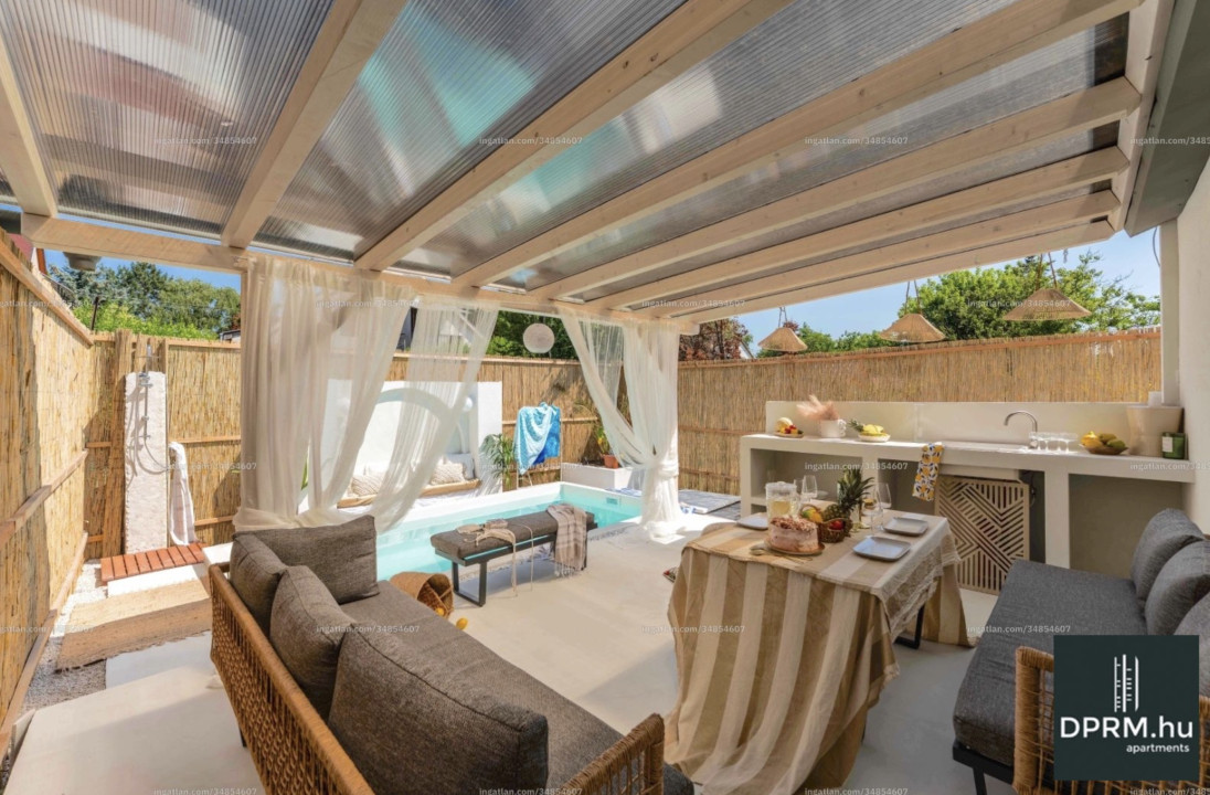A dreamlike holiday home is looking for its new owner in Balatonkenese, close to the free beach, in a quiet street. Everything is just a few steps away, perfect conditions. 70m2 living space + 31m2 terraces (front 12m2, back 19m2) Living room + 3 bedrooms + 1 mini room The price includes all the furniture, everything is new. - new electrical and water system, air conditioning - equipped new kitchen with dishwasher, oven - microcement coverings - heated saltwater pool with automatic system - equipped outdoor kitchen with refrigerator, sink