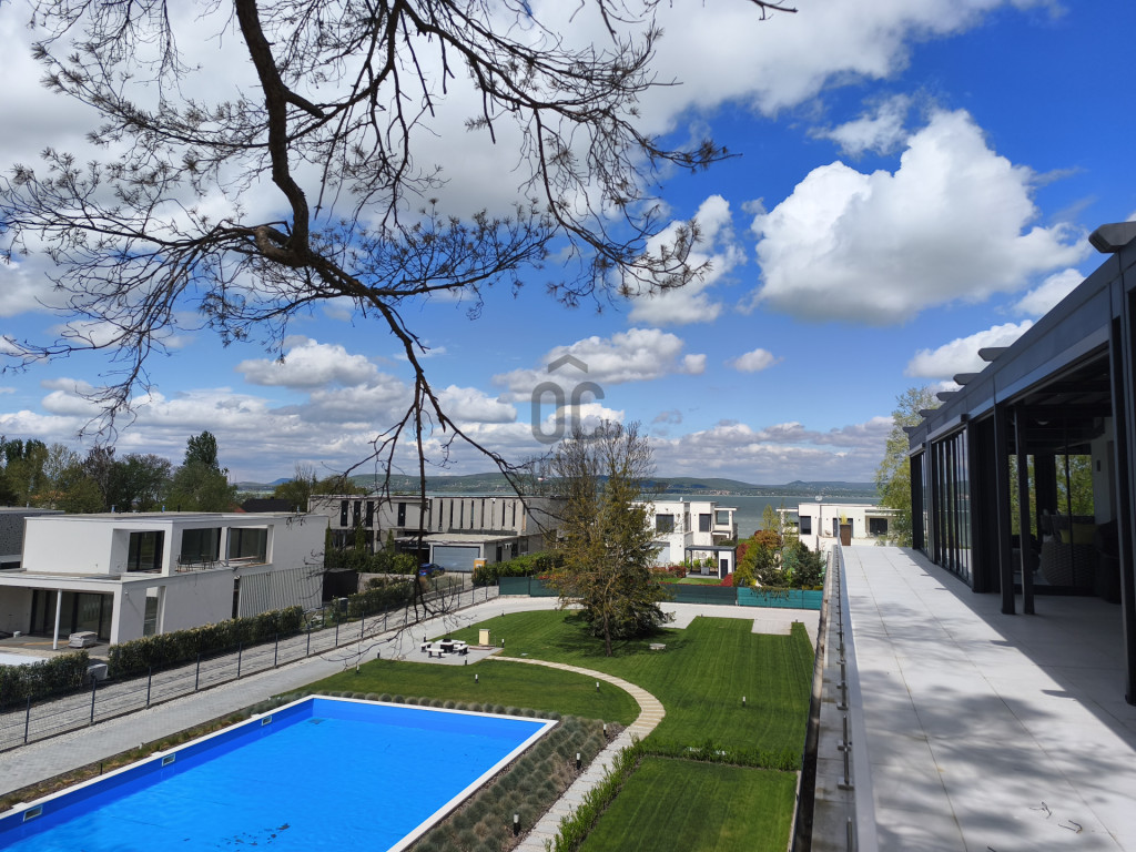 Balatonlellén, vízparti ősfás környezetben, új építésű, 78 m2-es penthouse, luxus lakás 68,18 m2-es terasszal, balatoni panorámával, komplett berendezéssel, 2 db felszíni parkolóval eladó.