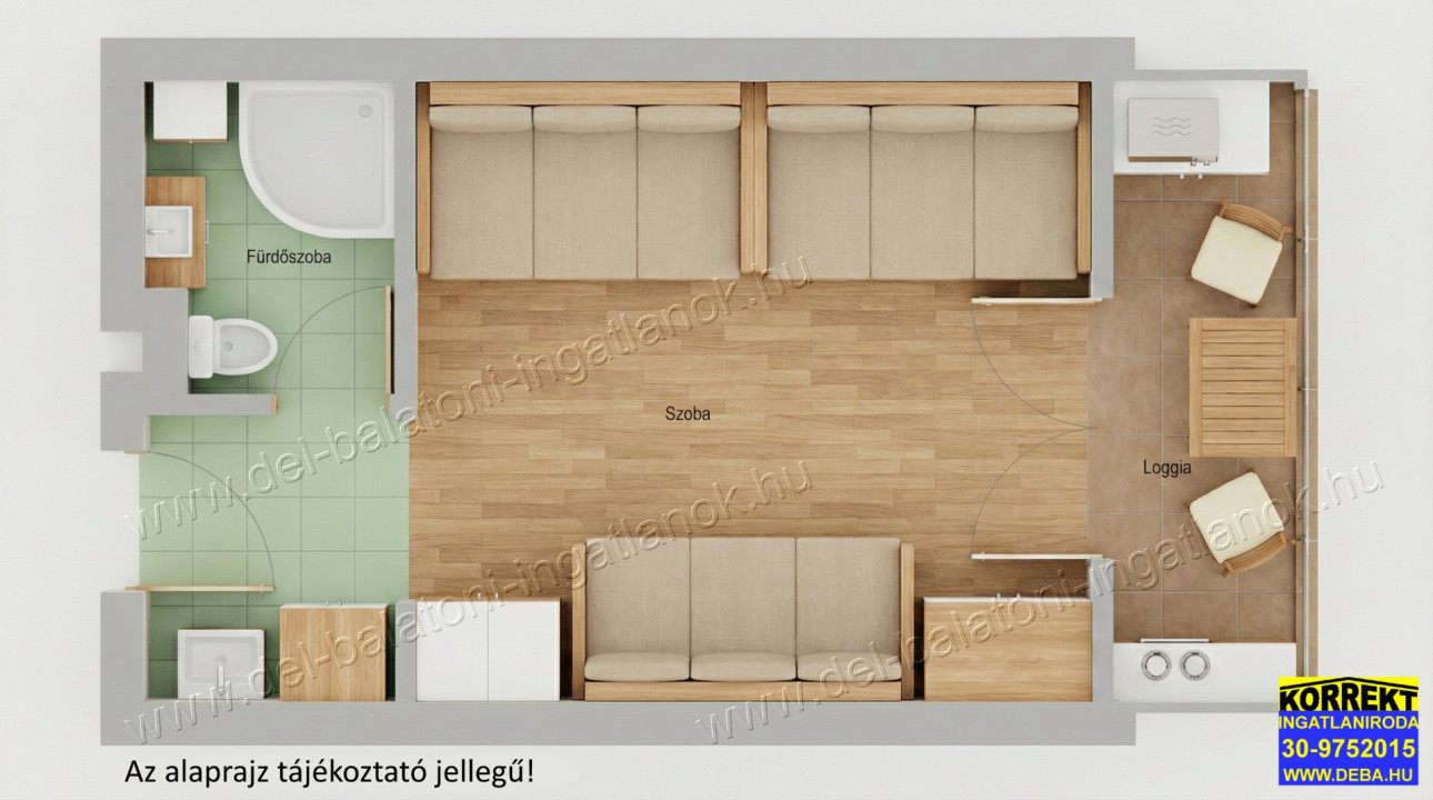 Az ingatlanról készült felvételek, fényképek és alaprajzok a Korrekt Ingatlaniroda tulajdonosa, Szabó Tibor szakmai munkái, amelyekre kizárólagos szerzői jog vonatkozik.