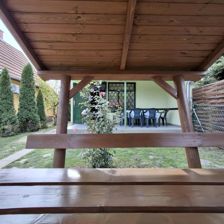 Az udvaron filagória alatt kiülők, kerti pagoda, bográcsozásra, szalonnasütésre kiépített hely, külön grillező.