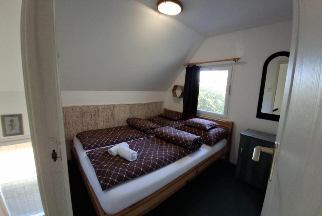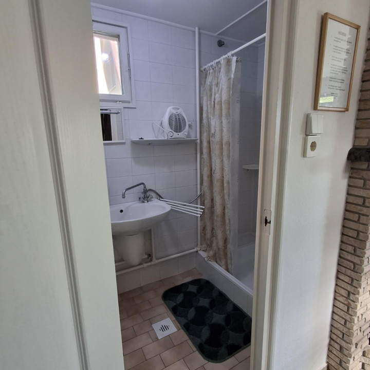 Az épületbe belépve egy nappali – konyha – étkező, innen nyílik a fürdőszoba, ami zuhanyzós, külön ajtóval nyíló wc.