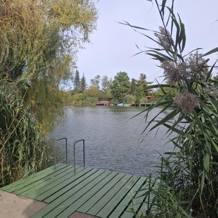 Vízen saját stég építve, amit körül ölel az ősnádas.