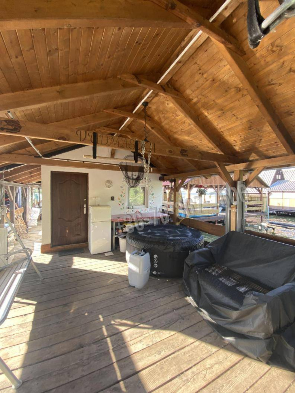 A stéghez jár egy horgászcsónak és egy elektromos csónakmotor. A csónak le és fel emeléséről egy csigás emelőszerkezet gondoskodik. A stég teljes berendezéssel eladó: hűtők, sütő, jakuzzi ,2 személyes rattan kihúzható kerti ágy, teraszfűtőgomba, stb.