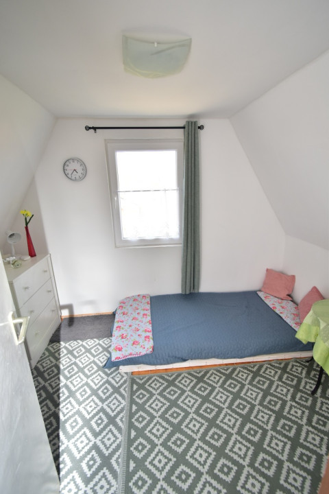 – alsó szinten nappali, külön konyha és fürdő wc-vel és egy kisebb szobával