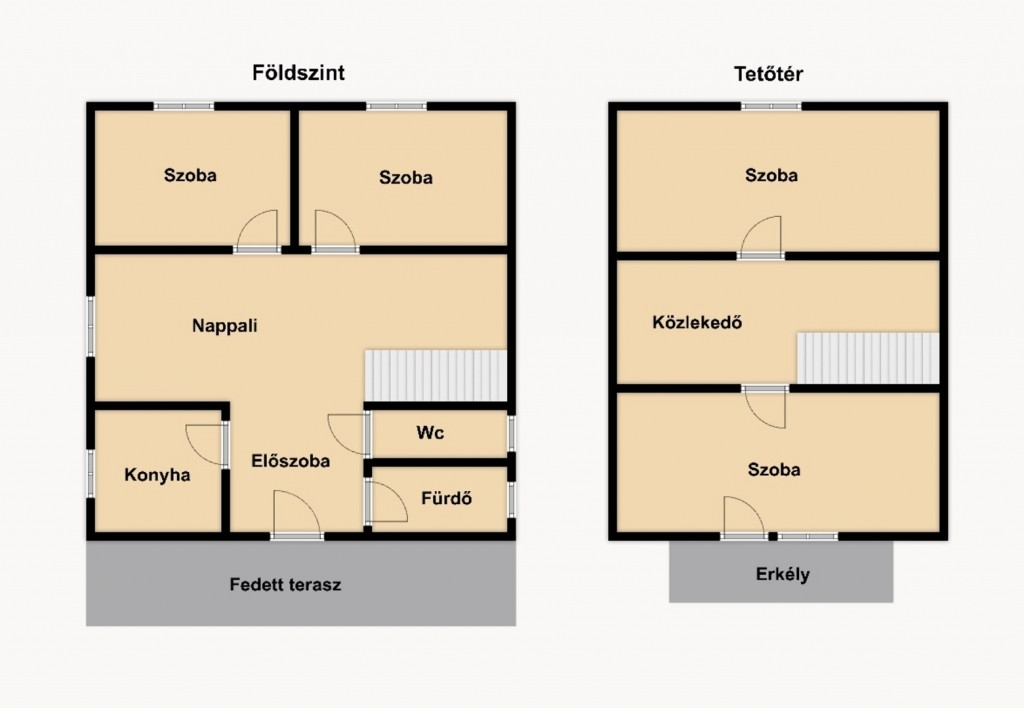 - 120 nm-es lakótér, melyben nappali - konyha - étkező, fürdőszoba, különálló wc, 3 egész és 1 félszoba található