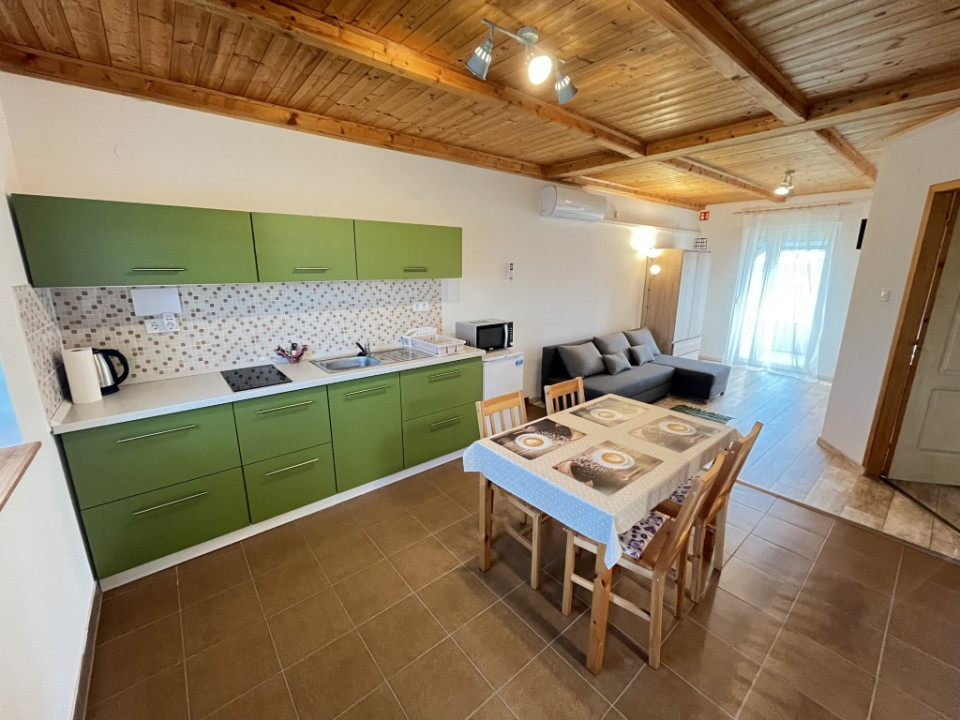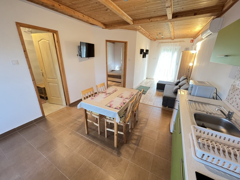 Buzsákon, Csisztafürdőn - külföldiek által kedvelt Balaton közeli településen - a Muskátli utcában, belterületi övezetben található, 2019-ben épület 76,72 m2-es újszerű állapotú üdülőház - eladó. Az épület 2 db 38,36 m2-es apartman. Mindkét apartmanban nappali-konyha-étkező, félszoba, fürdőszoba-wc, terasz helyiségek találhatóak. A telekre az apartmanokhoz 1 db vízóra és 1 db 32A. villanyóra került bekötésre. Az apartmanok fűtése és hűtése klímával, a meleg víz villanybojler megoldott, amelyet 2,5 kw. napelemes rendszer támogat, a szennyvíz emésztő gödörbe szikkasztón keresztül folyik. Mindkét apartmanhoz tartozik kocsibeálló, az udvaron szerszámos tároló és kerti bográcsozó, sütögető került elhelyezésre és leanderek, argentin selyemakácfa és törpe gránátalma bokor teszi hangulatossá a hátsó zöld területet, amely teljesen körbekerített. Az épületre külső 5 cm. szigetelés, a födémre 20 cm. üveggyapot lett elhelyezve. Az üdülőház befektetésre is kiválóan alkalmas, 300 méterre található a kisvasút állomása, 5 km.-re fekszik Fonyód, amit aszfaltos úton lehet megközelíteni, illetve 800 méterre található a gyógyfürdő, megépítették a napelemes parkot és egy sportlövészeti terület áll rendelkezésre akár versenyek céljából is. Telek: 492 m2