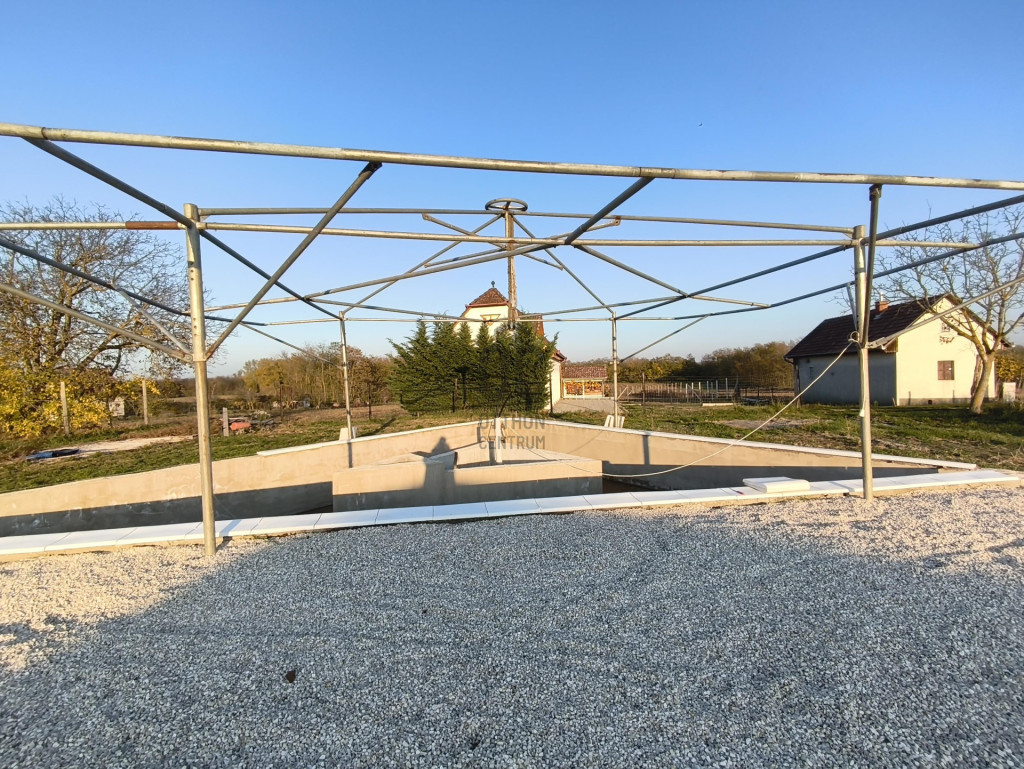 Parkosított birtokon kerti kiülő, medence és egy nádfedeles pince található.