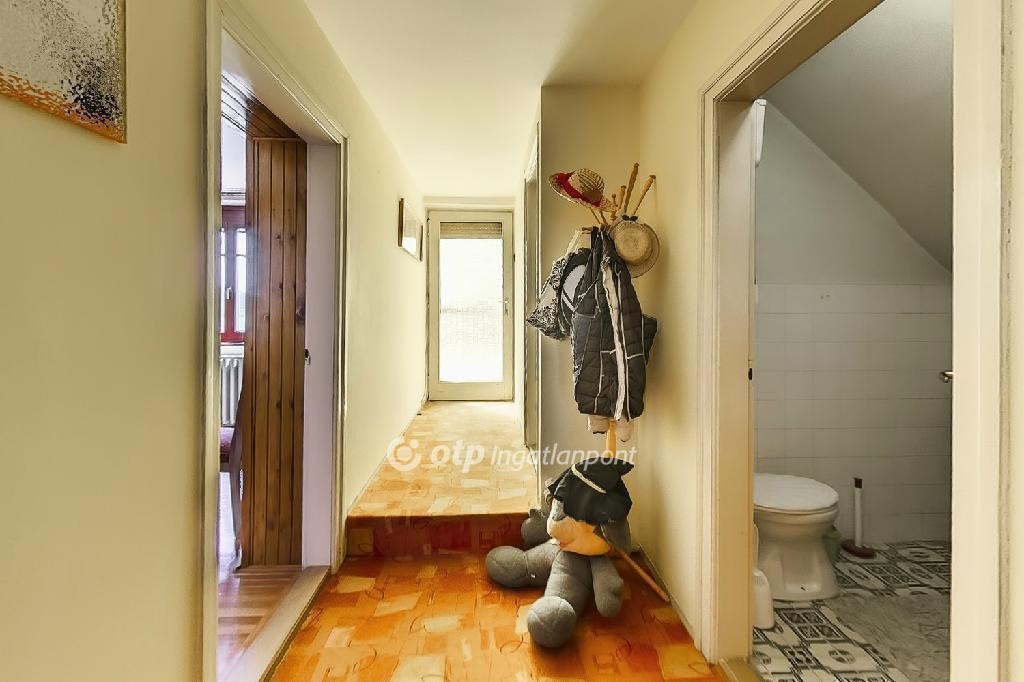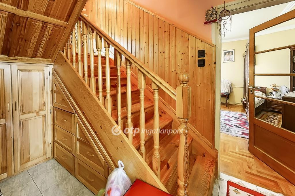 A lépcsőn felmenve érünk a fenti emeletre, ahol 4db külön szoba található, valamint egy fürdőszoba és egy táróló, valamint a fenti szintről az utcafrontra és kertre néző teraszrea tudunk kimenni.