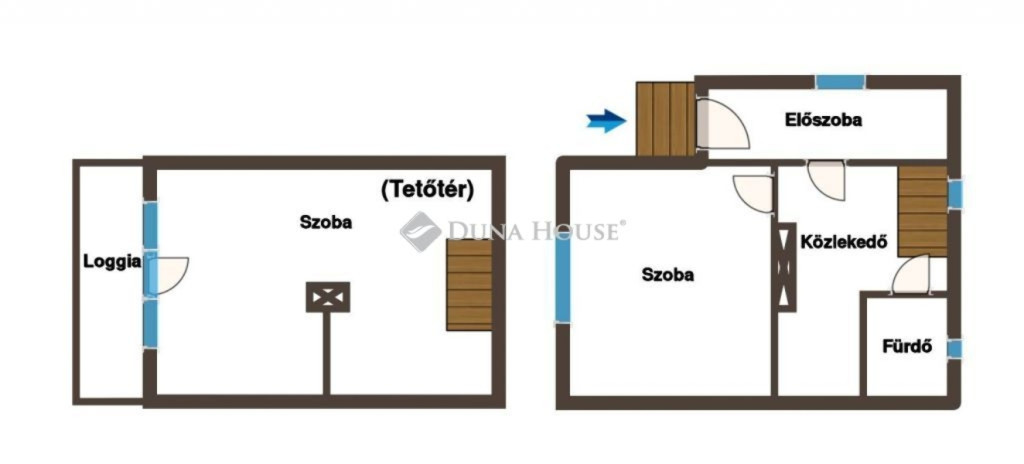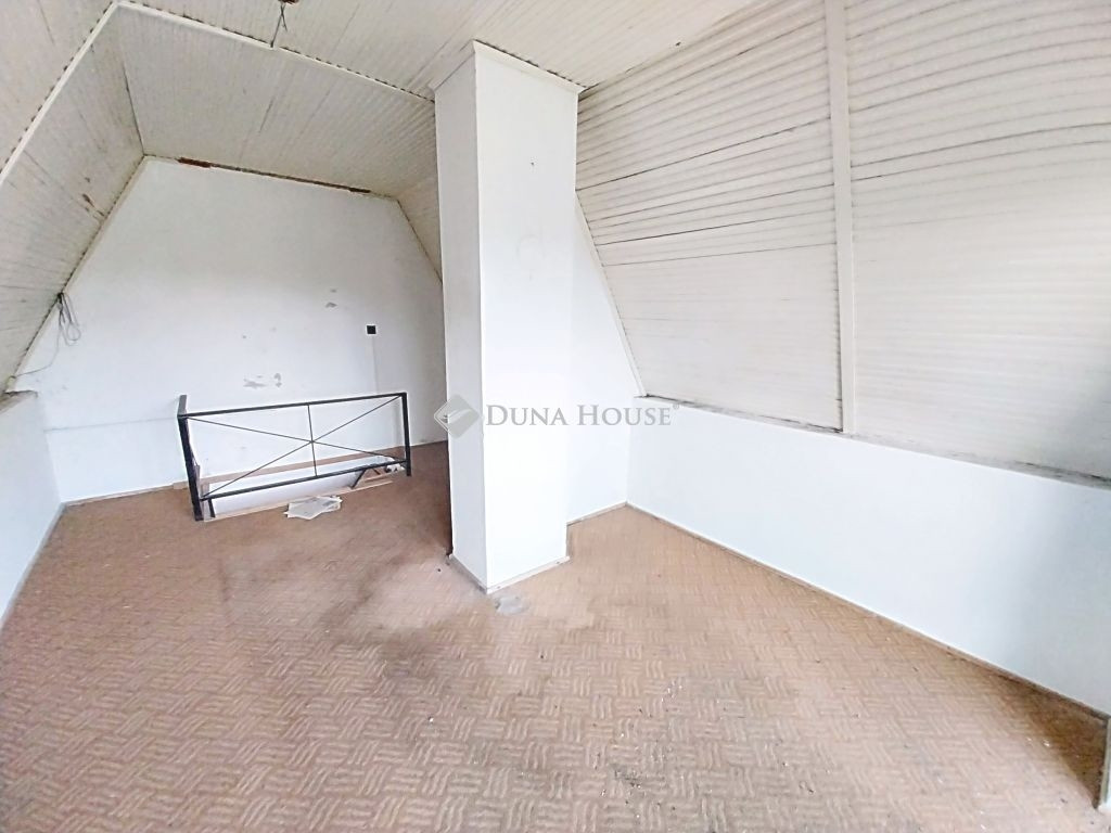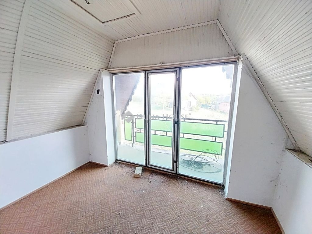 A házban egy előszoba, fürdőszoba, közlekedő, egy földszinti szoba és egy tetőtéri szoba található, melyből egy loggia nyílik.