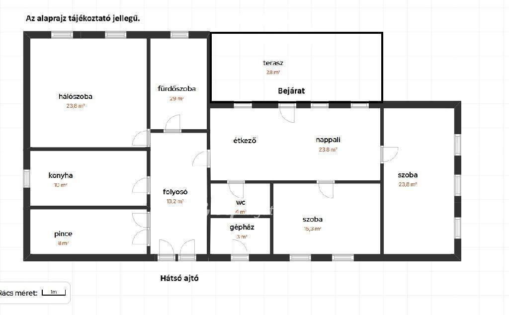 A ház remek elosztású, található benne 3 szoba, melyek teljesen különállóan nyílnak, konyha, kamra, nappali-étkező, folyosó, fürdőszoba-WC, egy különnyíló WC-helyiség, és egy jó állapotú pince is. Két bejárata és tágas terei miatt, akár két generációnak is megfelelő lakóteret biztosít. Burkolatai főleg járólaposak, jó állapotúak, szobái laminált padló borítást kaptak. Az ingatlanban felújításra került egy hangulatos kemencés, nyitott gerendás hálószoba is, mely igazi hagyományőrző stílusa miatt a ház éke maradt. A ház hátsó része alatt húzódik a kb. 16 nm-es pince, melynek impozáns kétszárnyas tömör fa ajtaja szintén a múlt szépségeiről árulkodik. A közművek közül a vezetékes víz, a villany telken belül megtalálható.