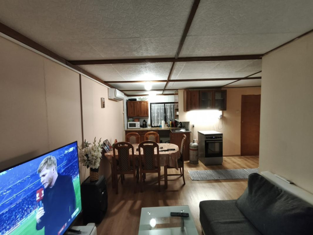 A szakkivitelezők által téliesített, komfortos 30 m2-es faház mindenben megfelel a kényelmes-kellemes otthon igényeinek: nappali-konyha, hálófülke, zuhanyozó + toalett, 2 oldalról terasz, (az egyik fedett), két külső tárolóhelyiség áll a lakó vagy lakók rendelkezésére.
