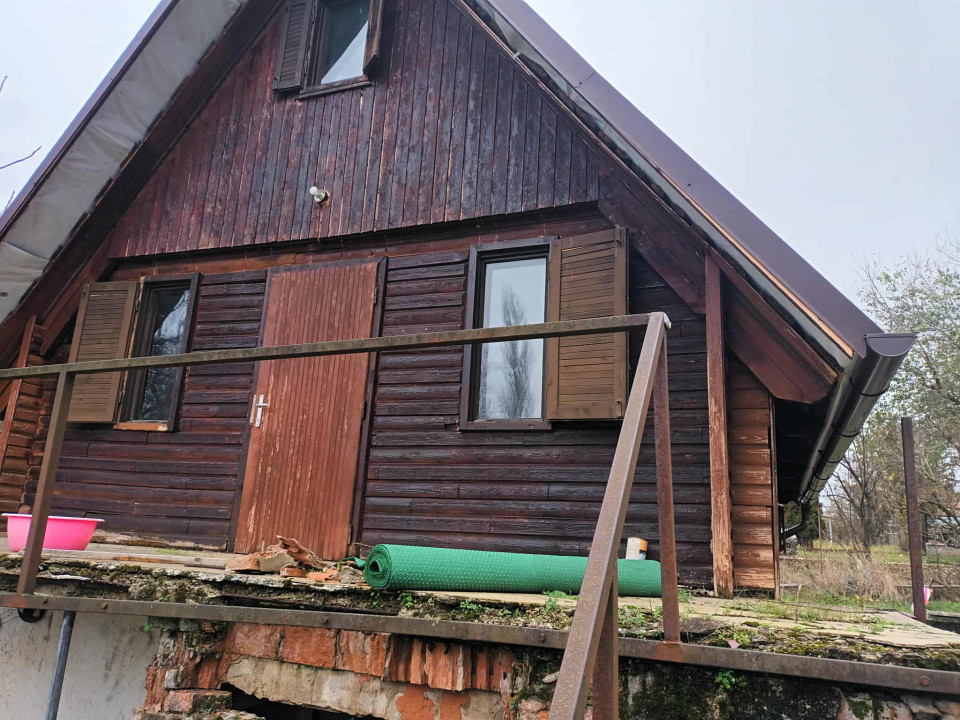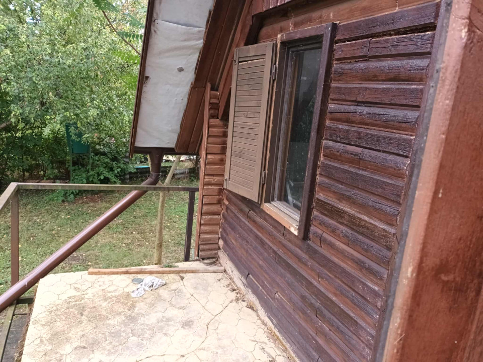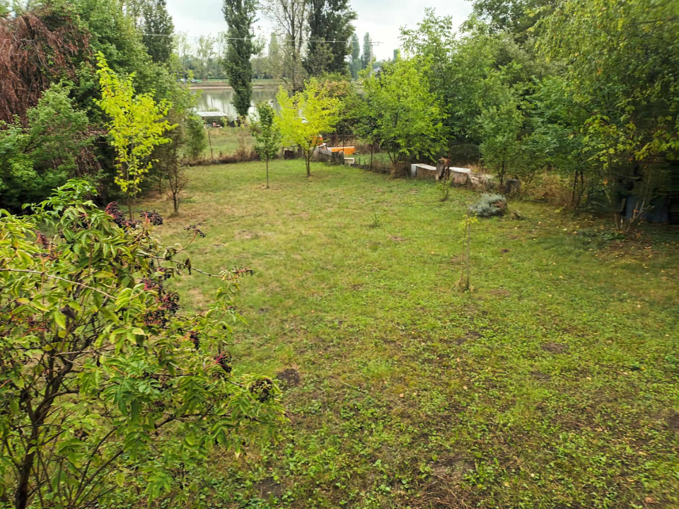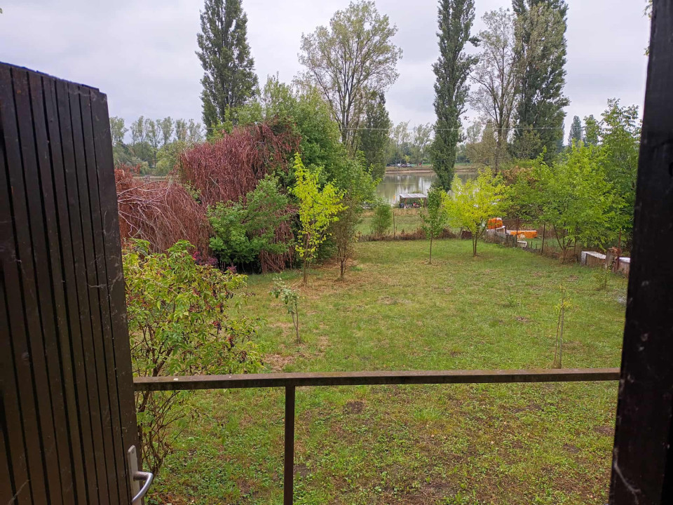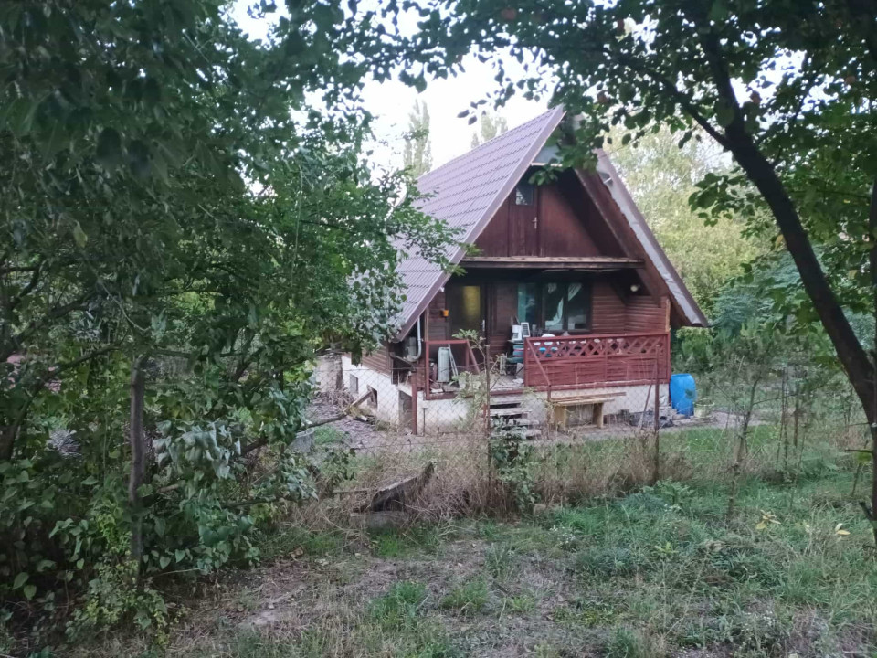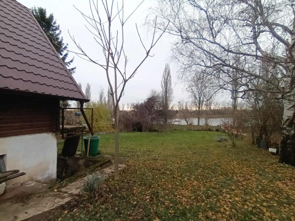 Dányi horgásztóra nyiló kert, panorámás alpesi típusú faház eladó.
