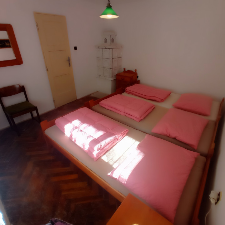Trojizbová chata len 15 minút od Banskej Bystrice, vo výbornom technickom stave: stačí sa nasťahovať. Chata má kuchyňu, kúpeľňu s WC a tri izby. Každá izba má krásnu, funkčnú kachľovú pec. Izby sú pekné a priestranné. Chvíle relaxu pri popíjaní kávy si môžete vychutnať na krytej verande. Dom sa nachádza na konci tichej ulice s dobrou dostupnosťou a parkovaním. Za domom sa nachádza krytá plocha s vonkajším krbom, príjemnými posedeniami a krásnym výhľadom na hory. Pozemok je malý, slnečný a nachádza sa hneď vedľa miestneho potoka.