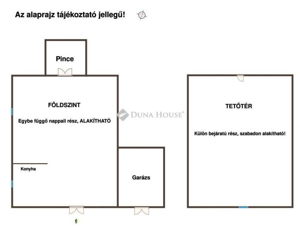 A telken lévő ingatlan két szintes, egyben a lakóterülete 85 m2.