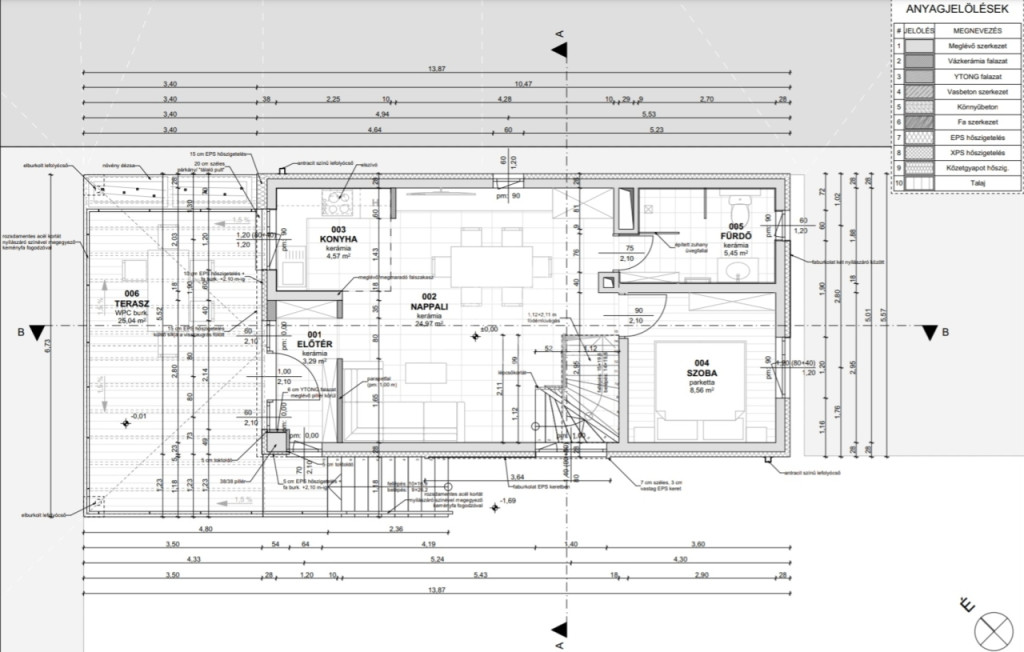 Első szint: előszoba, teraszkapcsolatos amerikai konyhás nappali, fürdőszoba, valamint egy dolgozó- vagy hálószoba.