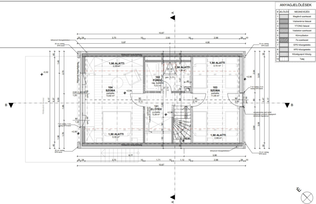 Második szint: két tágas hálószoba, gardrób (igény esetén további hálószobává alakítható) és egy fürdőszoba.