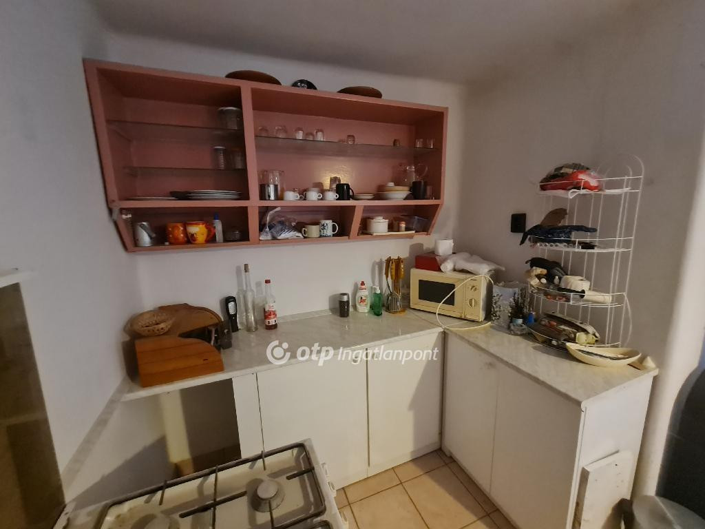 A telken egy stabil szerkezetű, két szintes kis ház áll, beton és tégla falazattal, ami már most is használható, de bőven hagy teret a tovább gondolásra. A lakószinten egy konyha és egy szobával egybenyitott élettér kapott helyet, az alsó szint pedig ideális alap egy fürdő kialakításához, ami korábban is tervben volt. A ház mellett egy beton víztároló található, az udvar vízellátását pedig fúrt kút biztosítja.