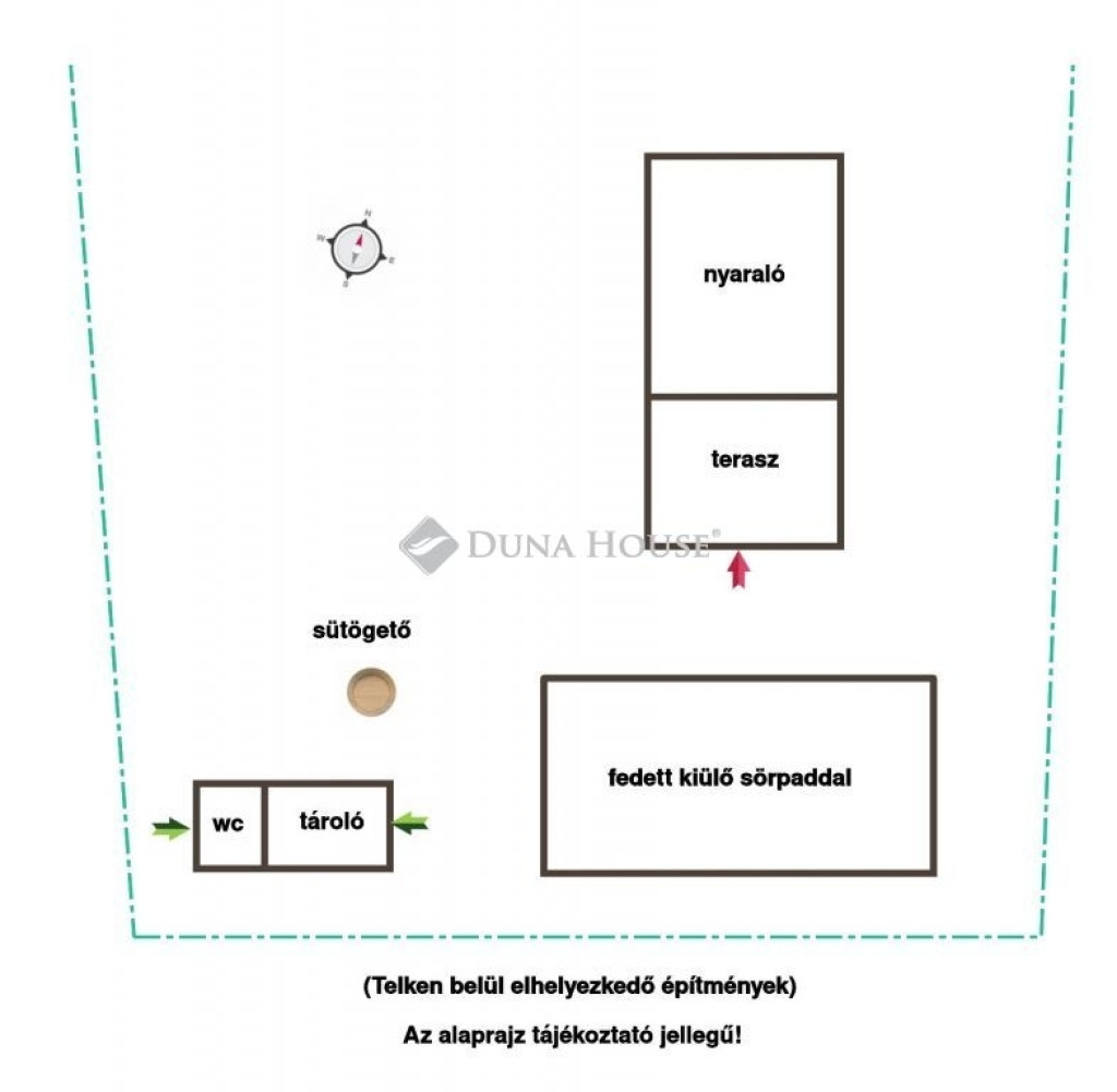 A kertben egy kb. 18 m² kerti kiülő is található sörpaddal, valamint sütögetéshez használható tűzrakótér is rendelkezésre áll.
