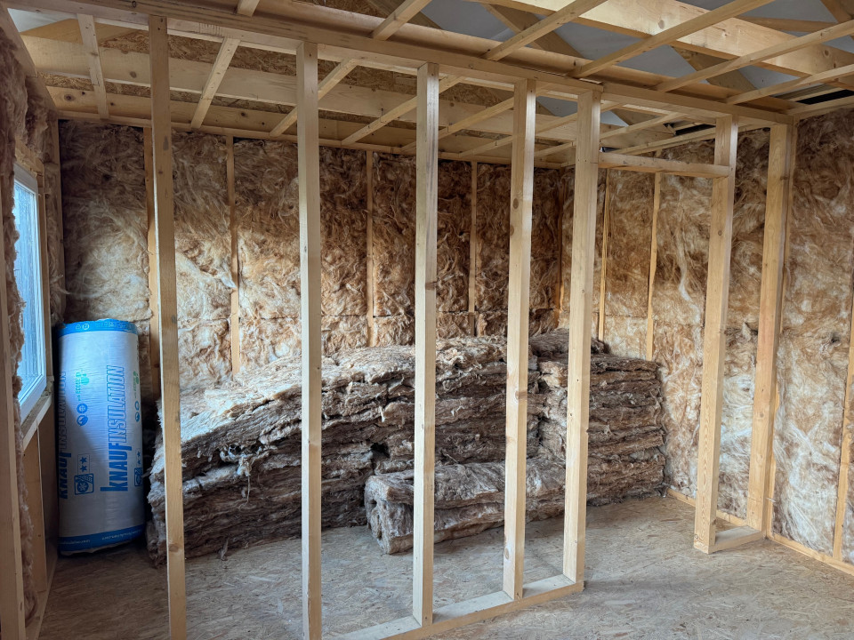 Villany kiépítve, fürdőszoba helye előkészítve.