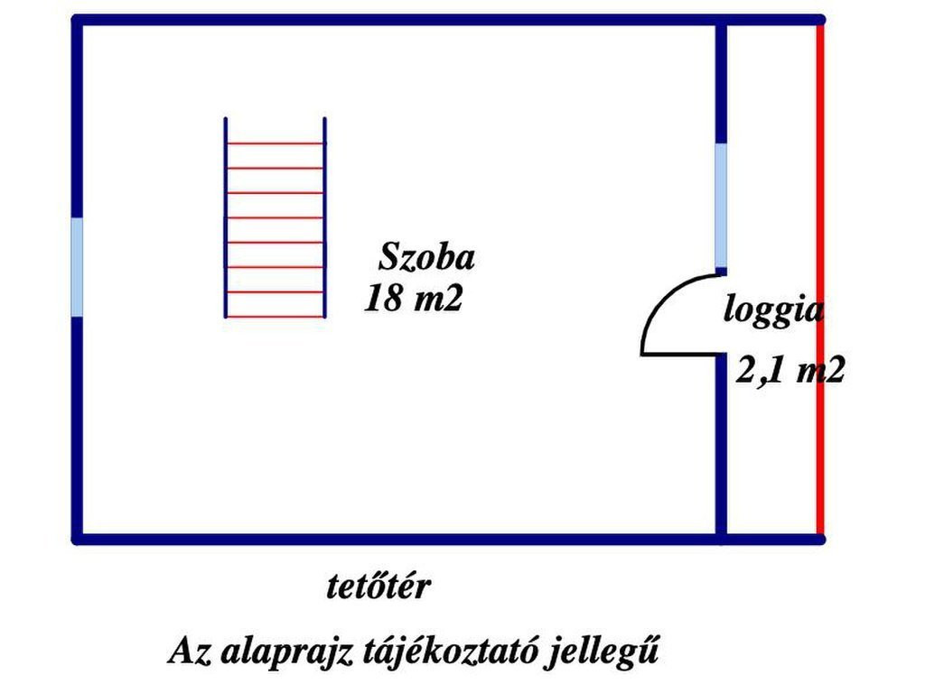 Helyiségei: földszinten egy nappali, konyha, tároló (amely a terv szerint mosdó) és terasz. A tetőtér egy légterű szoba, loggia.