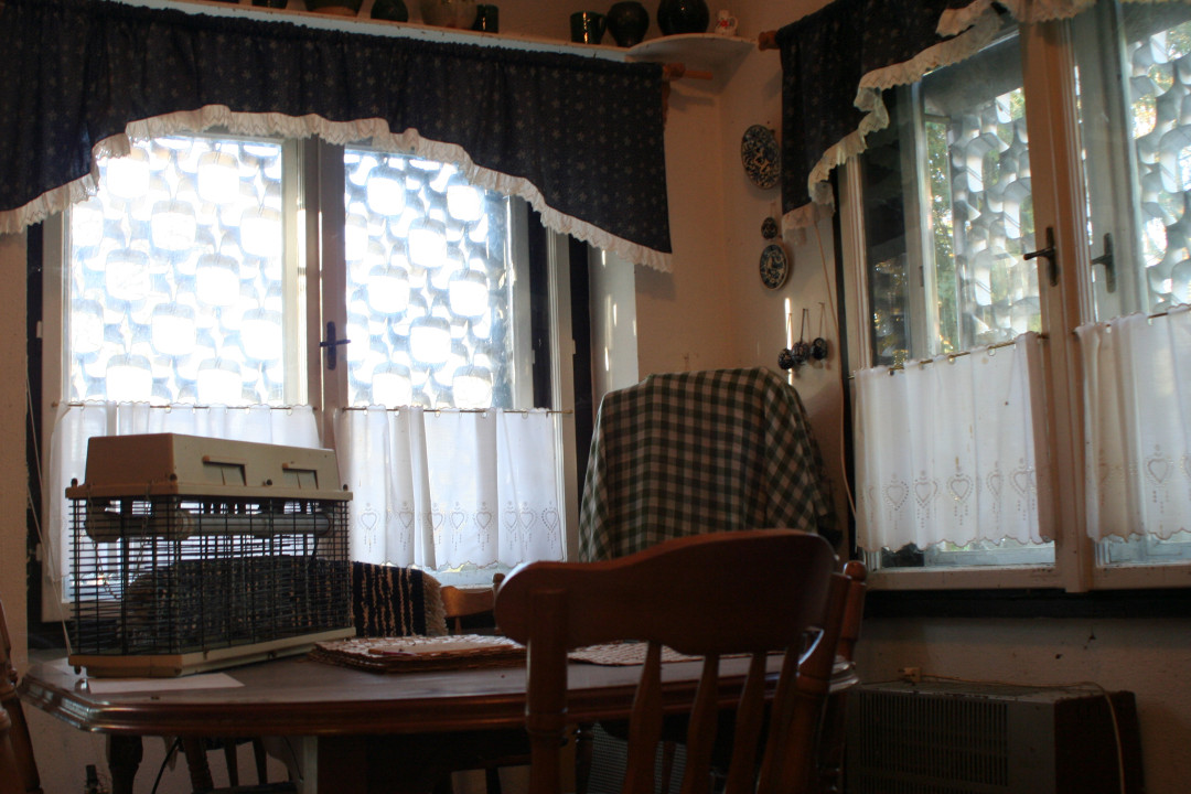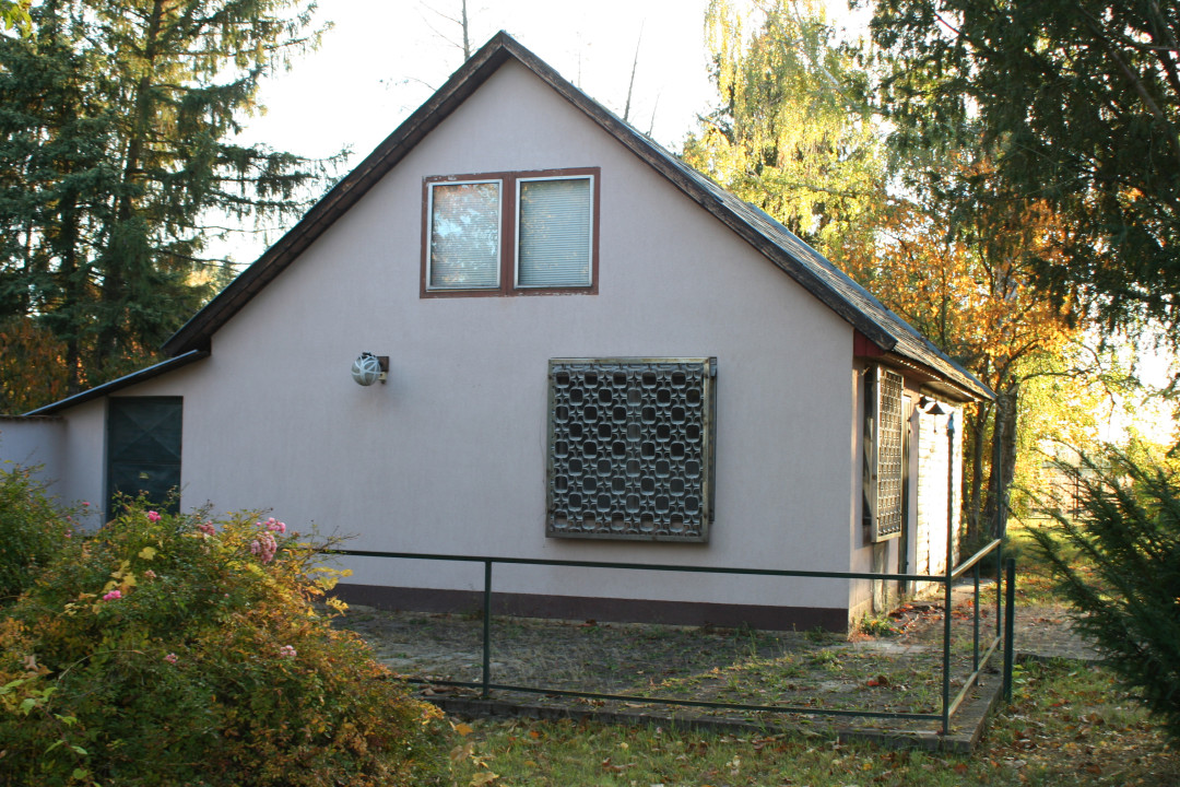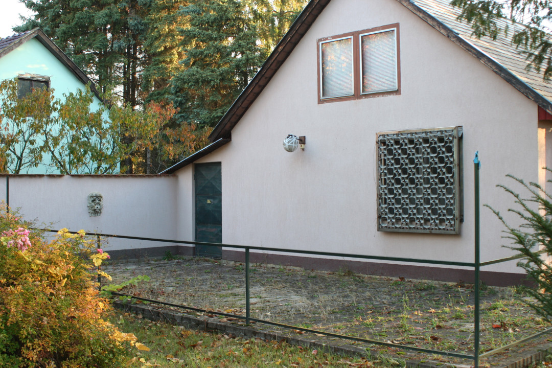 hálószoba és konyha). A hálórész fölött padlástéri galéria. Síkpala tető. Nagy