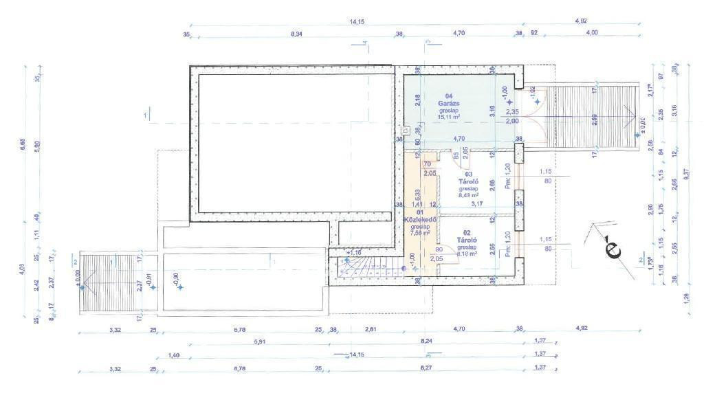 -Parkolásra a két épület között fedett gépkocsi beálló került kialakításra, térkövezett részen igény szerint 3-4 autó tud parkolni kényelmesen