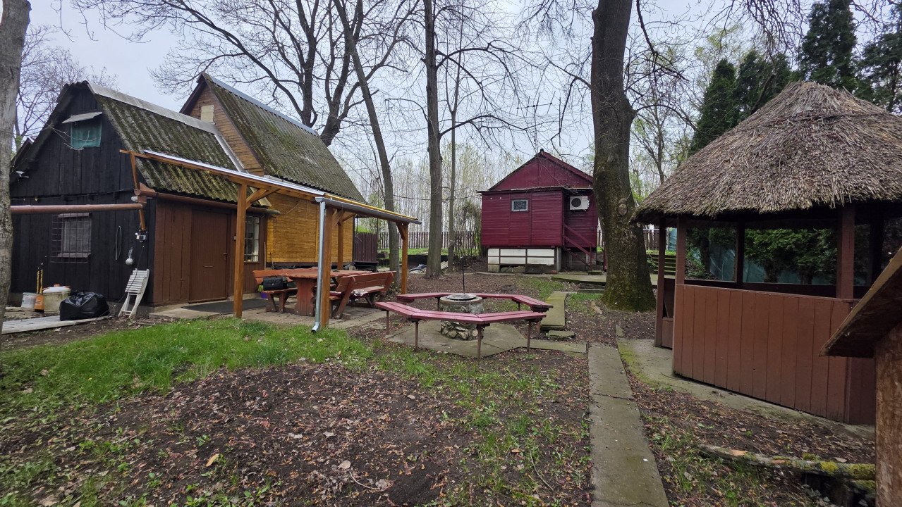 Keleti-főcsatorna hajdúszoboszlói szakaszán (Nádudvar felé vezető részen) 2 jó állapotú faház 2 telken egymás mellett együtt eladó. A jobb oldali kis teraszos faház kb 26 m2-es helységei: lent egy szoba és a tetőtérben még egy szoba. Ehhez hozzá lett építve még egy konyha aminek a tetőterében szintén egy kis szoba lett kialakítva. A másik kisebb faház 2 félszobából és egy fürdőszobából áll. Ebben klíma is található, áramot ez a másik háztól kapja. Vízellátás fúrott kútról biztosított.