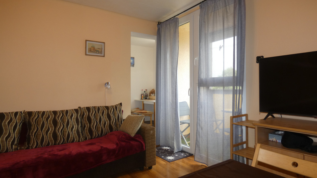 biztonsági ajtós, műanyag ablakos, hűtő/fűtő klímás, bútorozott 1 szobás, 26 nm -es apartman.
