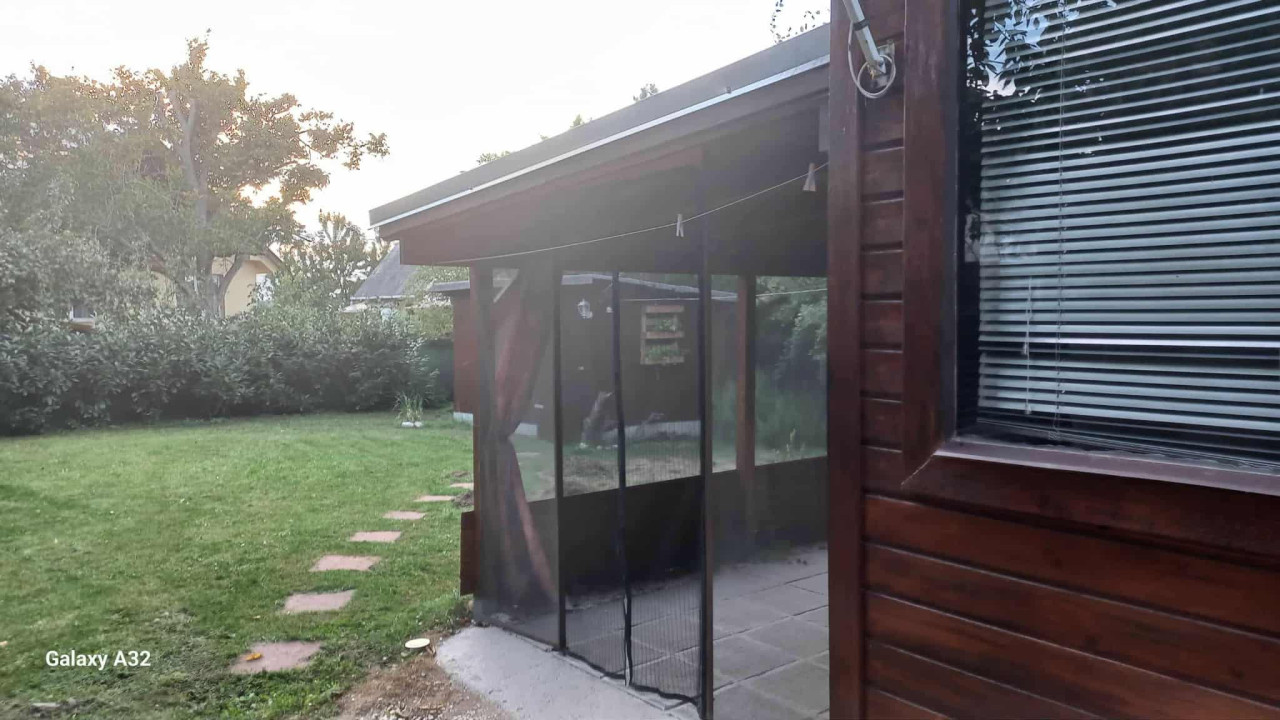 Hegykői strand közelében (Fertőhomokon)464 m2-es szépen parkosított ,ápolt telken 50 m2-es egyszintes könnyűszerkezetes nyaraló eladó!