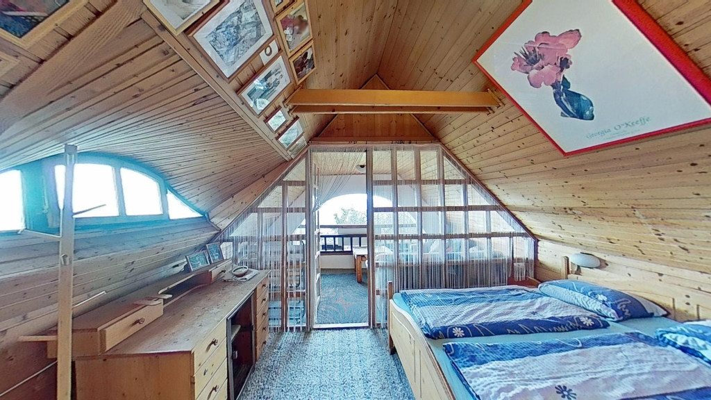 A körülbelül 1 km-es erdei úton jól megközelíthető ingatlan a Szent-György hegy DNY-i oldalában épült az 1800-as években, 300 m-es tengerszint feletti magasságban. Páratlan panorámája a Balatonra, a Szigligeti vártól Edericsen át a Keszthelyi-hegységig minden évszakban, minden napszakban más arcát mutatja, sosem unalmas a benne gyönyörködőknek.