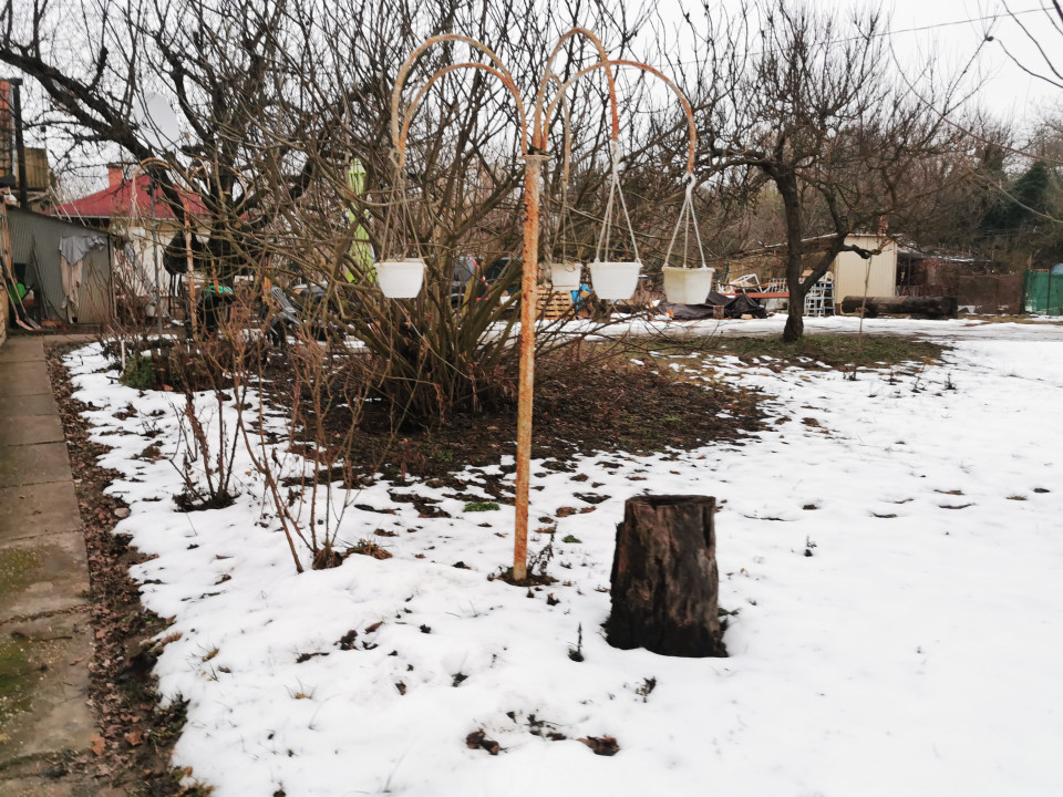 És egy 3m2 alapterületű nyaraló fedett terasz, fedett zárt terasz 1 szoba konyha, fürdö, 2 hálló szoba a tetőtérben. Víz villany, fúrt kút van.