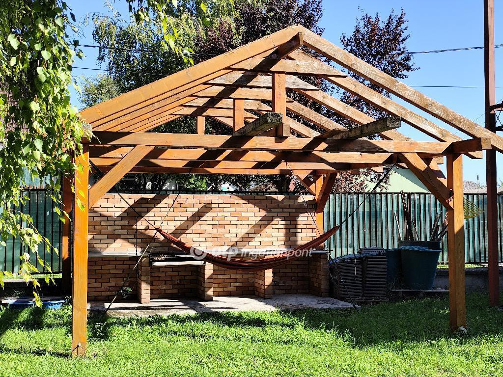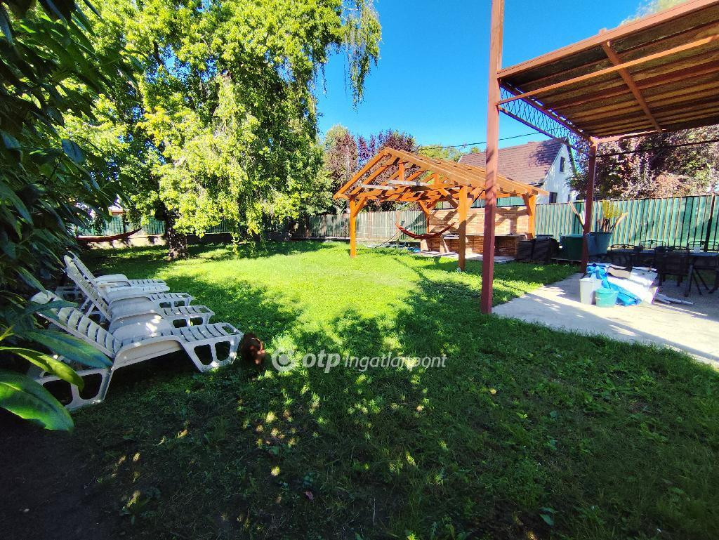 542 nm, két telek összevonásával alakult ki. AUTÓBEÁLLÁSI lehetőség adott. Füvesített udvar közepén egy nyírfa gyönyörű látványt nyút, a telket határoló babérmeggy sor árnyéka a tökéletes kikapcsolódás helye lehet.
