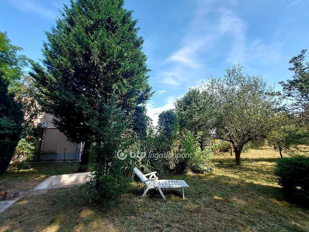 Gáz nincs a telken belül. Gyümölcsfákkal, málnával, fügefával telepített az udvar, szalonnasütő van a ház előtti kertrészen.