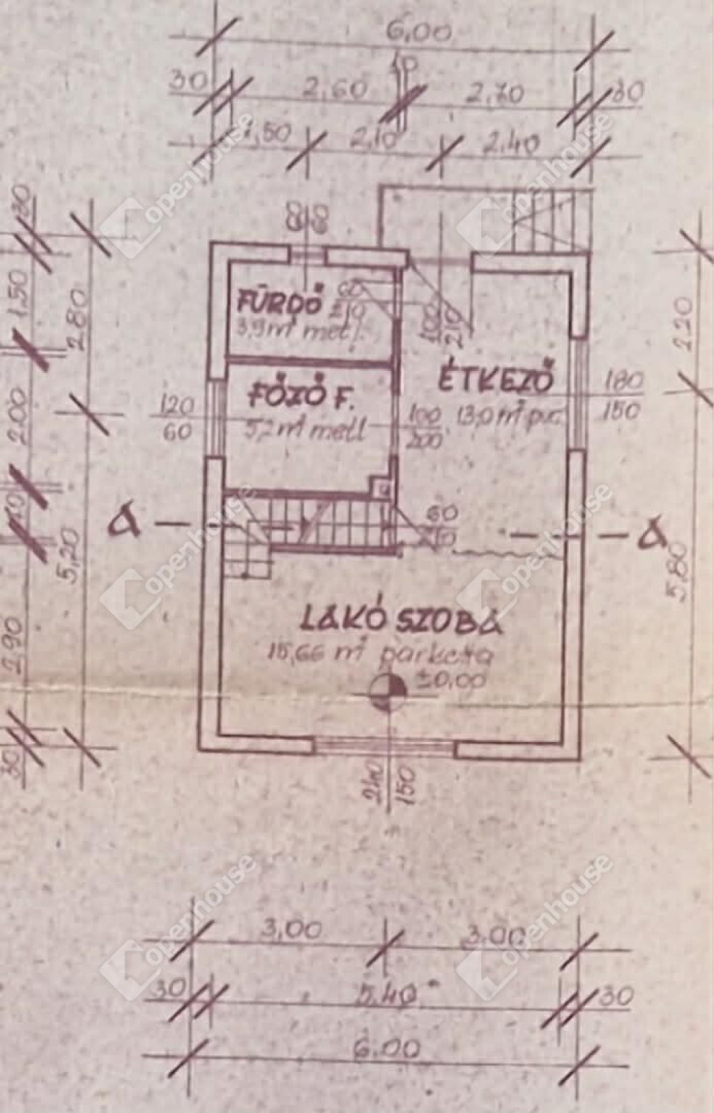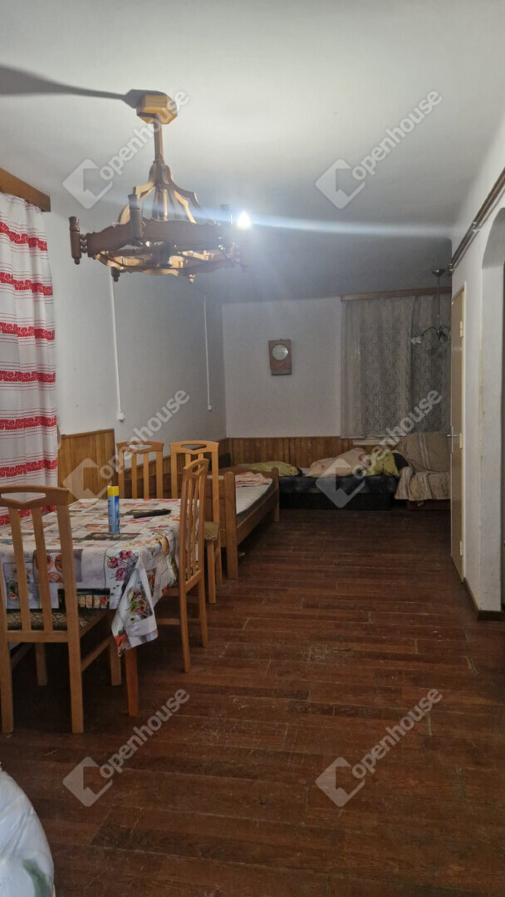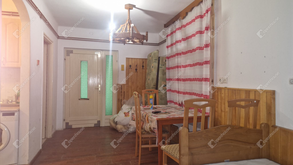 A nyílászárók hagyományos fa ablakok redőnnyel, felújítást igényelnek. A burkolatok járólap és fa parketta kombinációjából állnak.