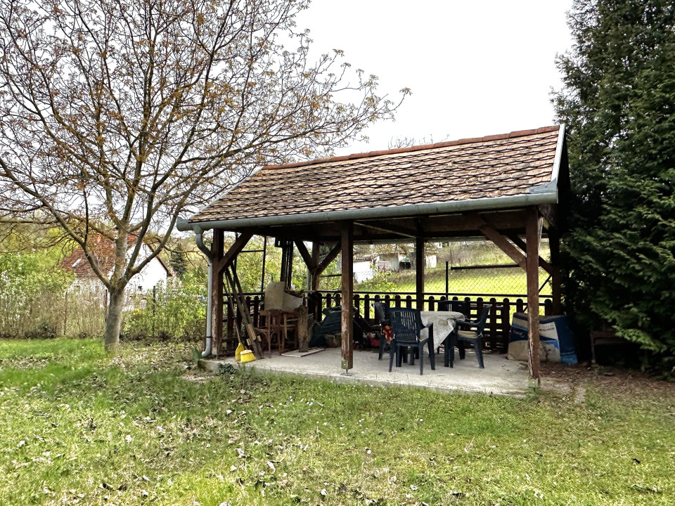 A telek gondozott, leginkább füves sík terület, kerti filagória tartozik hozzá. Tárolónak használható kisebb pince van a ház alatt.