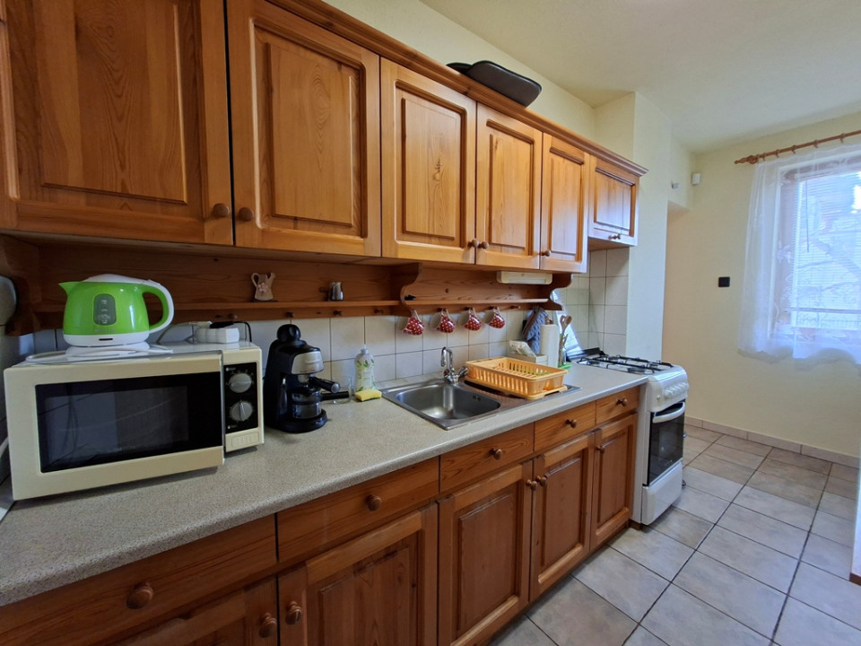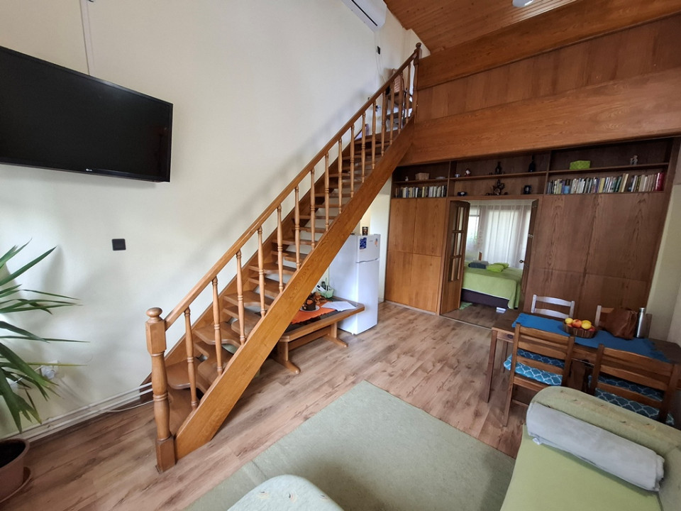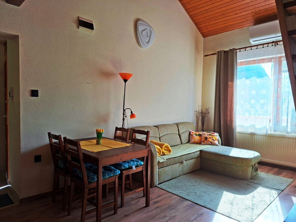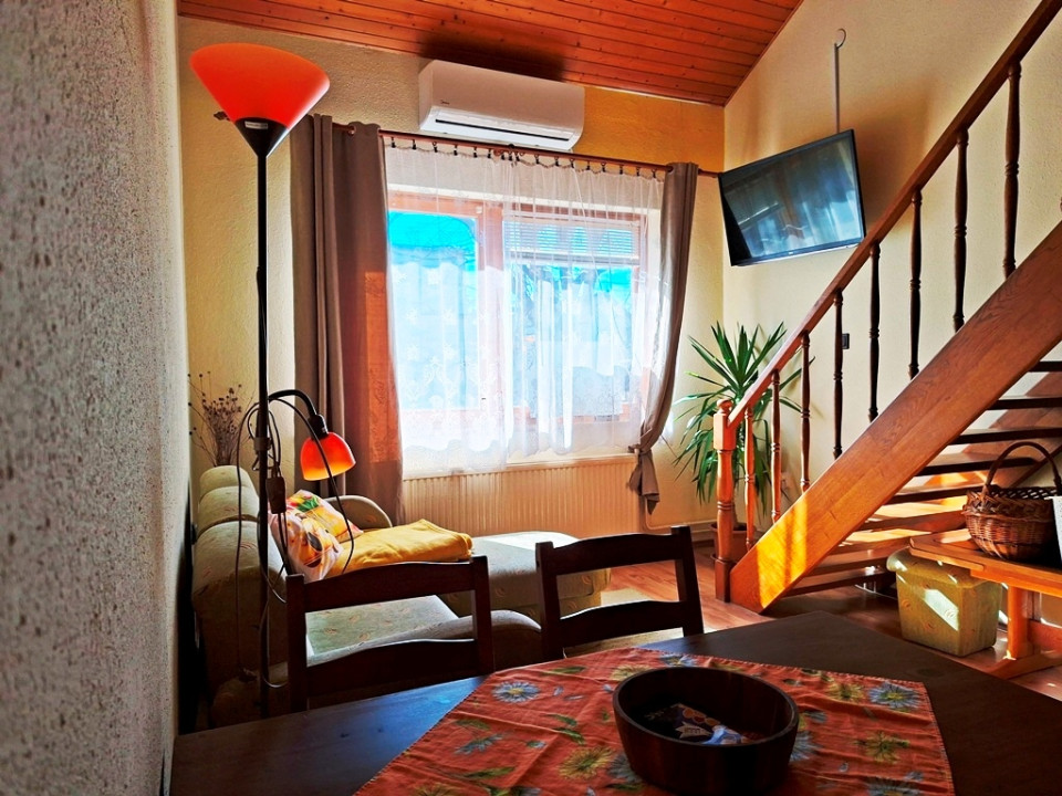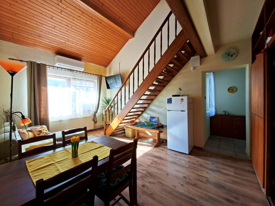 A ház praktikus elrendezésű, a földszinten világos nappalival, egy hálószobával, konyhával (beépített bútorzattal) és hangulatos galériával rendelkezik, így bőséges teret kínál a család és a barátok számára. Az épület alatt 3 helyiségből álló, betonos pince található. És képzelje el, ahogy a fedett teraszról gyönyörködik a naplementében egy pohár bor társaságában!