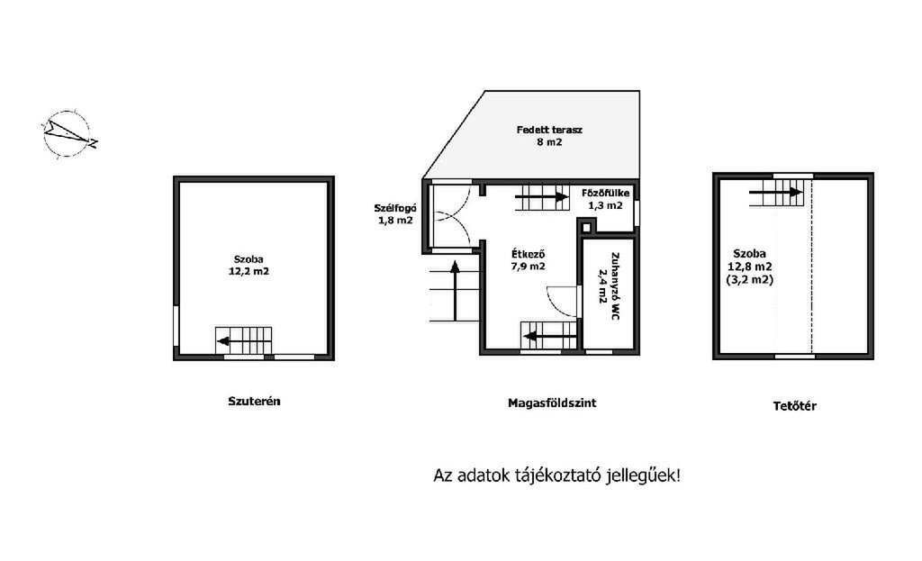 Az épületben 2 szoba található, egy a szuterén szinten és egy a tetőtérben, 4 fő kényelmes pihenésére ideális. Az épülethez nagy fedett terasz kapcsolódik.