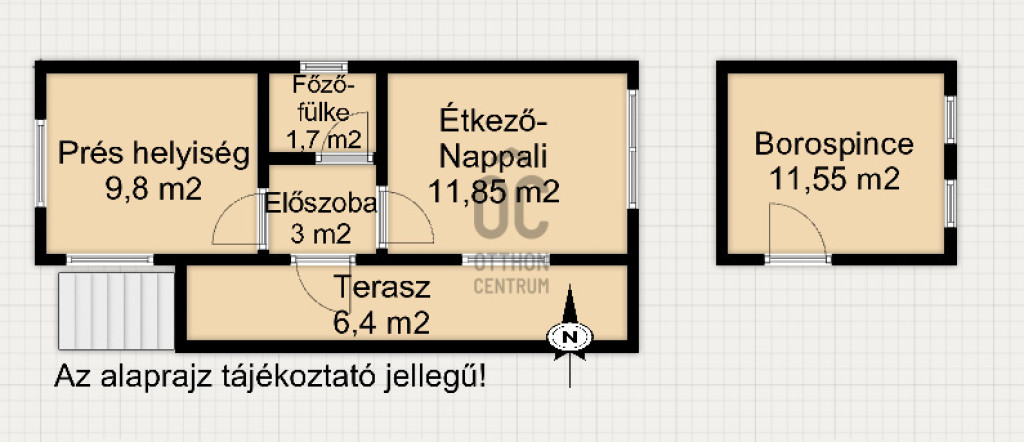Jellemzői: - 4 helyiségből áll: konyha, nappali-étkező, présház, alatta borospince és tároló