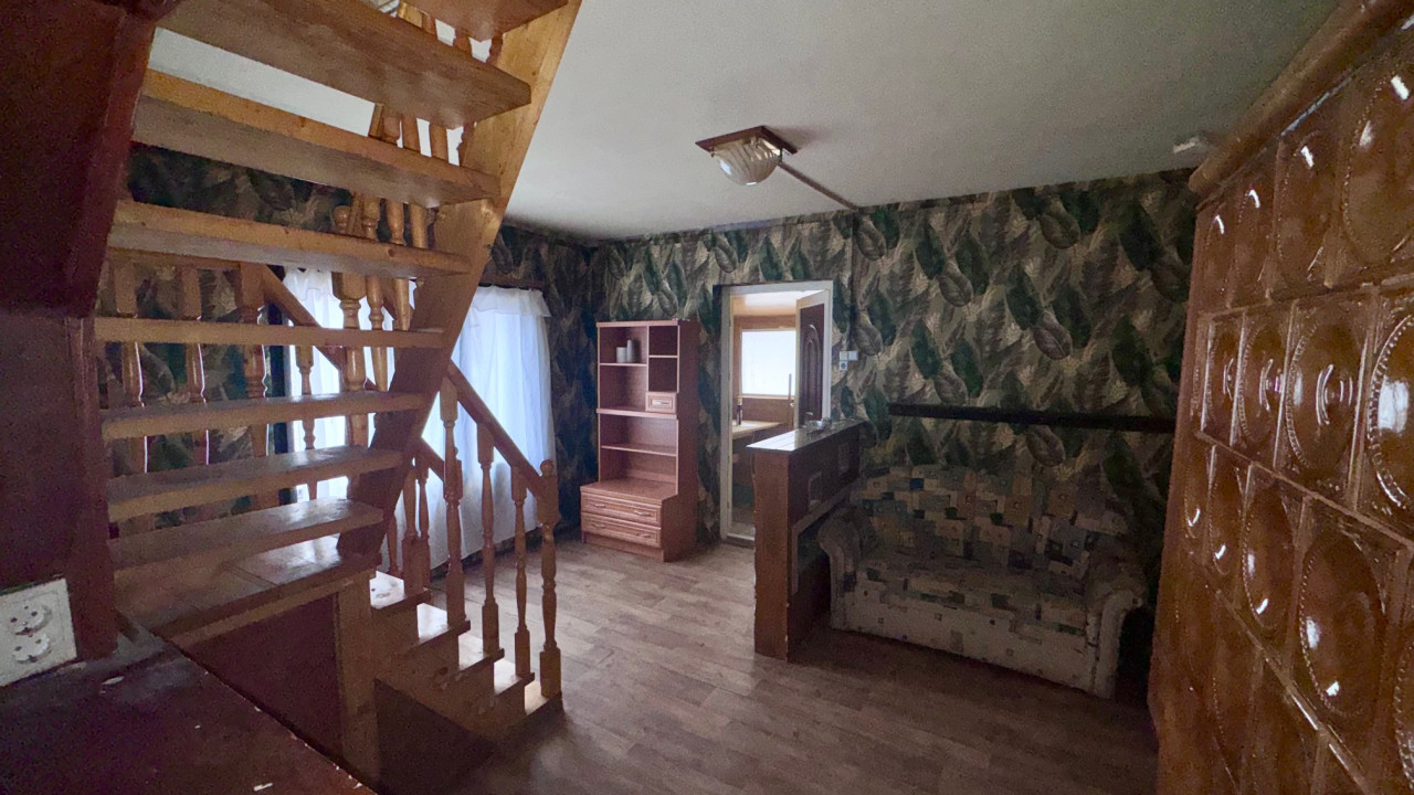Az alsó szinten elosztása az alábbi, előtér, tágas nappali, konyha, valamint zuhanyzós fürdőszoba lett kialakítva, a tetőtérben egylégterű nagyszoba található.