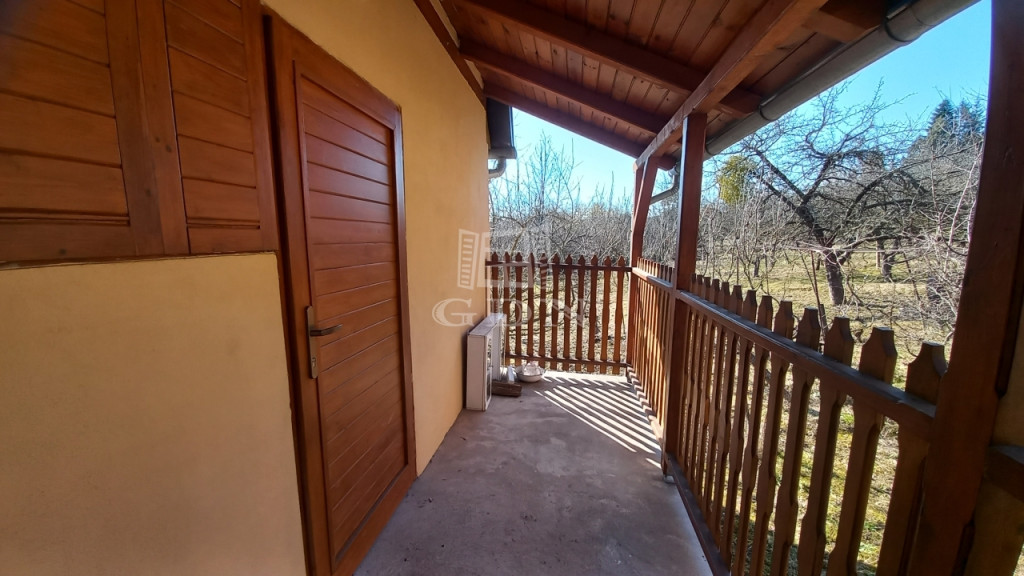 A hétvégi ház 2 szobás kialakítású, az alsó szinten egy nappali, fürdő és konyha kapott helyet, míg a padlástérben egy körbejárható hálószoba található, amely két kisebb, különálló hálóként is funkcionálhat. A fűtésről vegyestüzelésű kazán gondoskodik, amely gazdaságos és hatékony megoldás. Azonban a hálószobába egy hűtő-fűtő klímát is beépítettek. A ház kívülről 4 cm-es nikecellel hőszigetelt, a padláson 10 cm-es szigetelés található. A fürdőszobát néhány éve újították fel, a vízellátást a kristálytiszta vízzel, korlátlan vízhozammal rendelkező fúrt kút szolgáltatja. Áramlás kapcsolós házi vízmű és villanybojler segíti a komfortot. Mosógép és mosogatógép is ráköthető a rendszerre.
