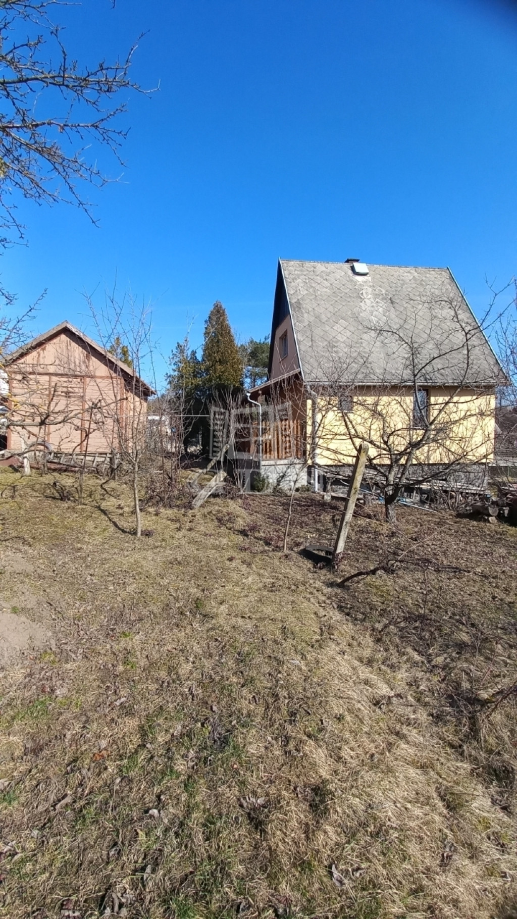 A telek dupla, 2000 négyzetméteres, termő gyümölcsfákkal, egy 63 négyzetméteres lakhatásra is alkalmas épülettel, melyhez egy 14 négyzetméteres terasz és pince is tartozik.