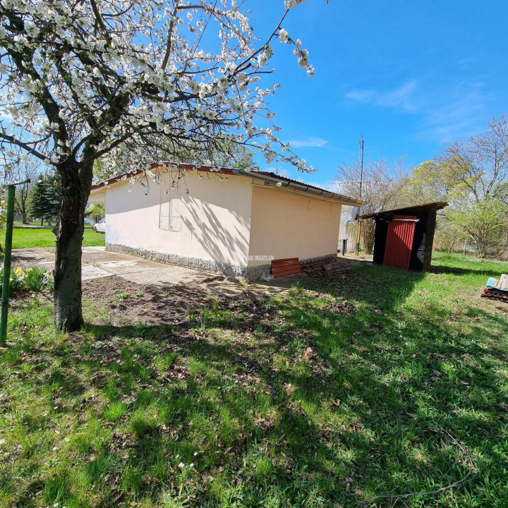 A telek 850 nm-es, gondozott, 3 oldalról kerített, amelyen 40 nm alapterületű, beton alapon lévő könnyűszerkezetes ház található 15 nm-es fedett terasszal.