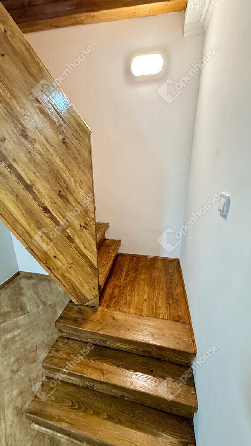 a földszinten nappali-konyha és fürdőszoba található, az emeleten pedig egy külön hálószoba kapott helyet.