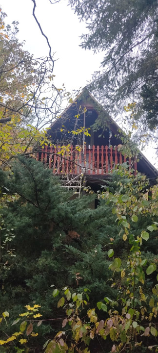 A házikó 2 szintes: alul egy konyha, zuhanyzó, külön wc, nappali-étkező; felső szinten egy 20 négyzetméteres, teraszos háló- helység.