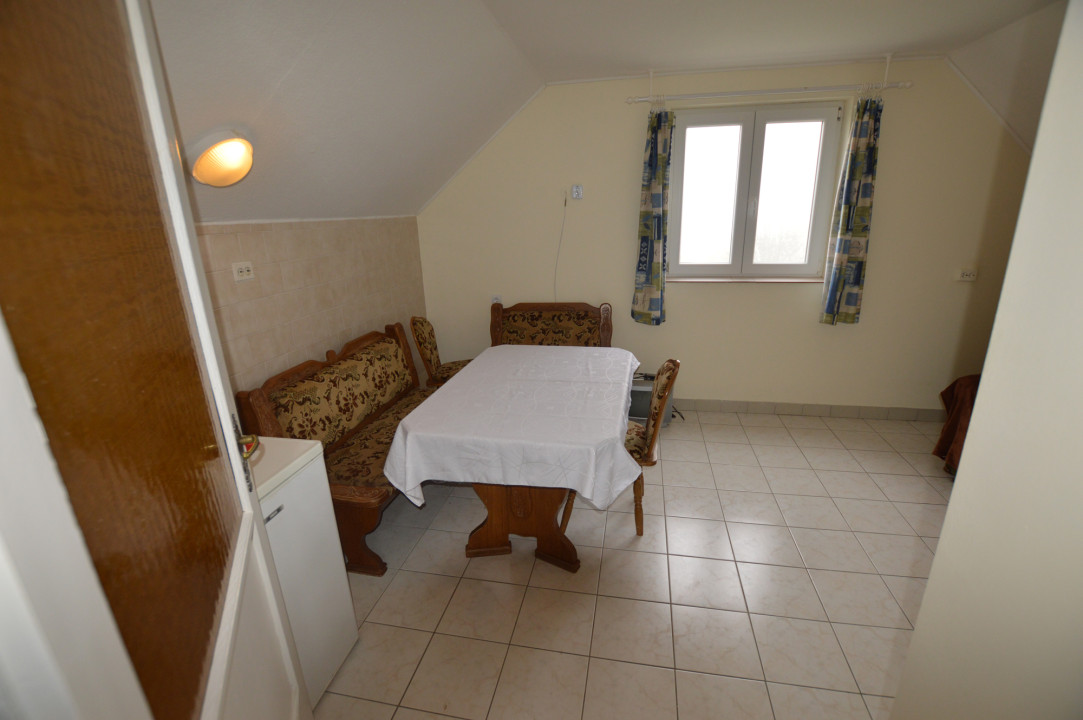 A tetőtéri lakás az épület mellett kialakított külső lépcsőn keresztül közelíthető meg.