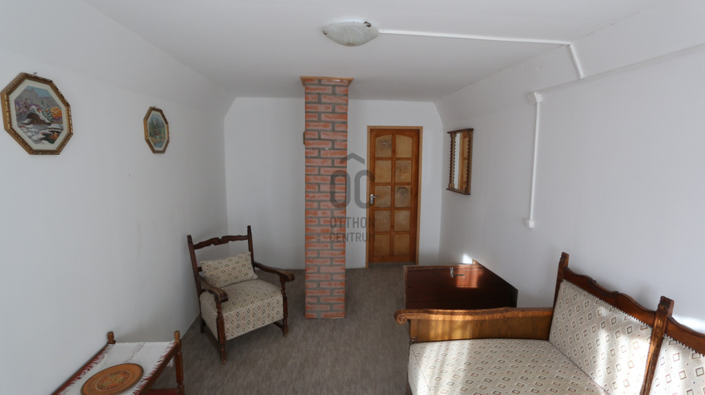 - A nappaliban egy kandalló kialakítható, vagy fatüzeléses kályha üzembe helyezhető. A kémény üzemel.