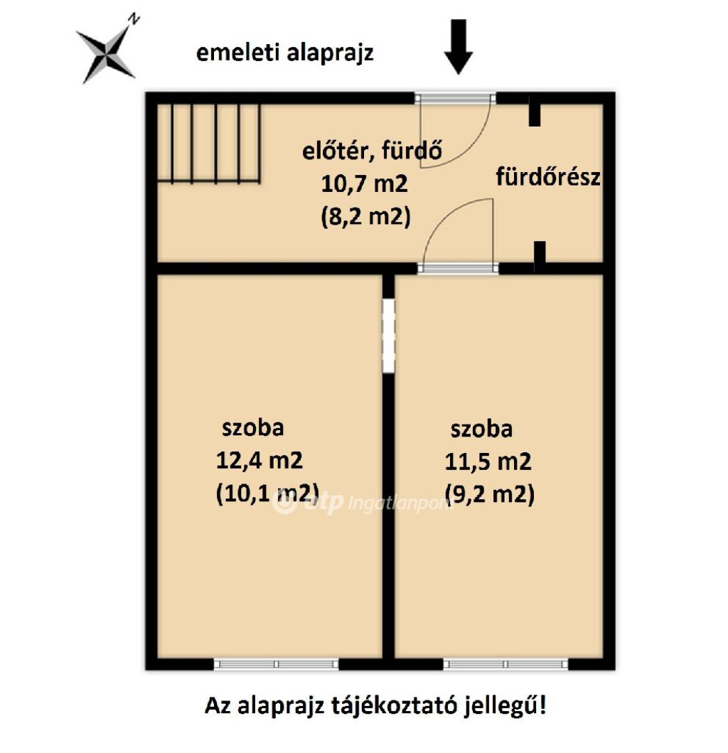Az ház alsó szintjén konyha és tágas tárolótér található, valamint innen jutunk a pincébe is. Az emeleti részen két szoba, és egy vizesblokk kapott helyet. Az emeleti rész külön bejárattal is rendelkezik, ahonnan rögtön a kertbe léphetünk.