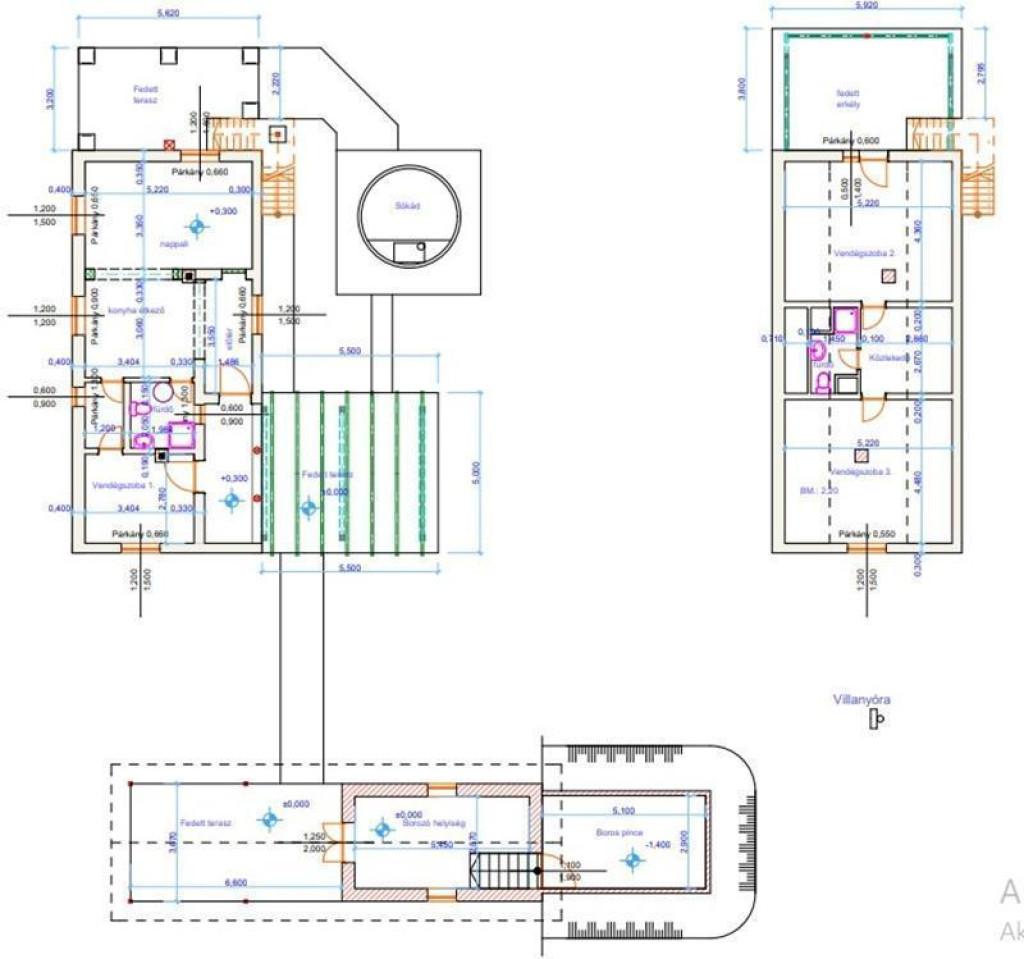 Az emeleten külön bejáratú lakrész kapott helyet két szobával, fürdővel, mellékhelyiséggel és saját panorámás terasszal.